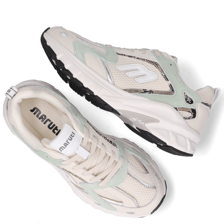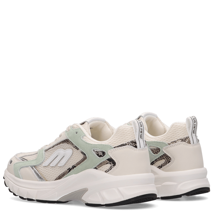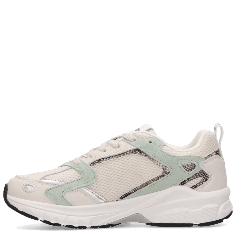 The Nima Sneakers Offwhite by Maruti combine sporty lines with fresh colour accents. The mix of leather, suede and breathable mesh creates a dynamic, layered design. The offwhite base is complemented by subtle mint details, giving the sneaker a modern and energetic look.